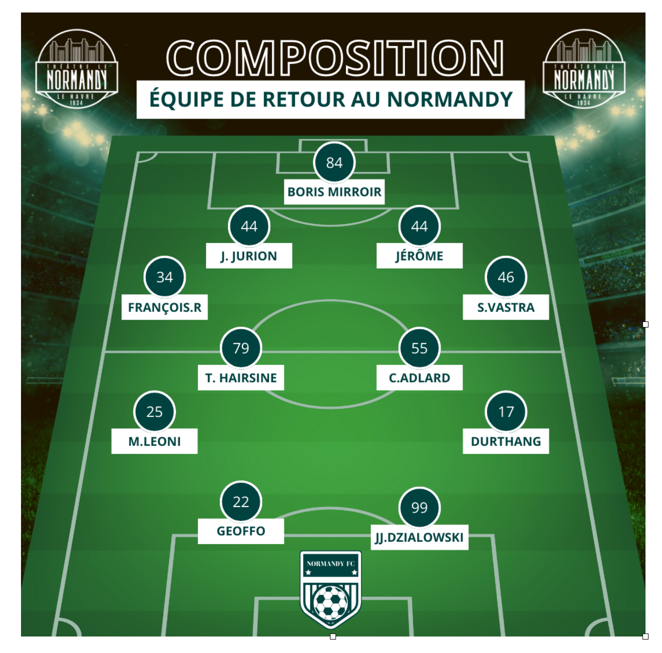Au final l’équipe se compose donc de 5 Normands, 2 Sudistes, 2 Parisiens et 4 internationaux.